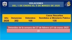 En la semana del 27 de febrero al 5 de marzo fueron detenidos 15 sujetos señalados por el delito de