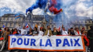 Una multitud de personas ha salido este domingo a la calle en París para manifestarse en contra del envío de dinero, armas