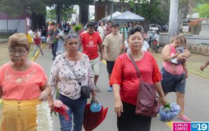 Militantes sandinistas visitaron este viernes el cementerio general depositando flores en las tumbas de las madres heroínas Lidia Saavedra y