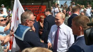 El presidente de Rusia, Vladímir Putin, ha conversado este domingo con algunos de los ciudadanos que se reunieron en San