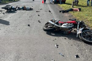 El choque frontal entre dos motos registrado la mañana de este domingo en la zona de la comarca El Naranjito,