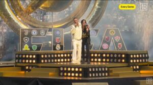 Los reconocidos cantantes Robbie Williams y Laura Pausini ofrecieron una presentación en vivo este domingo 13 de julio, antes del inicio de