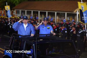 El Comandante Daniel Ortega, Copresidente de la República de Nicaragua, encabezó este viernes el desfile policial “Unidad, Fuerza y Victorias”,