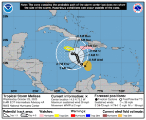 (AFP)- La tormenta tropical Melissa, que actualmente azota el mar Caribe, “podría convertirse en huracán el jueves” y amenazar especialmente a Haití,