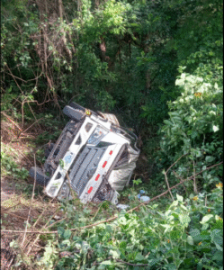 Problemas en el sistema de frenos, fue lo que al parecer provocó el vuelco de un camión en un barranco