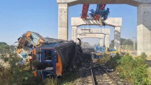 Una grúa de construcción se derrumbó este miércoles sobre un tren de pasajeros en la provincia de Nakhon Ratchasima, en