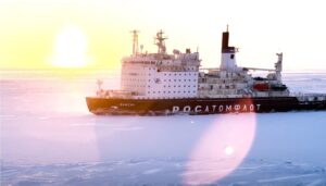 Ocho rompehielos de tracción atómica y 14 rompehielos diésel-eléctricos rusos celebraron con pitidos el 65.º aniversario del primer vuelo espacial.