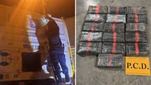 Un total de 16 kilos de cocaína fueron hallados y decomisados ocultos dentro de un contenedor de fruta fresca que tenía como destino el