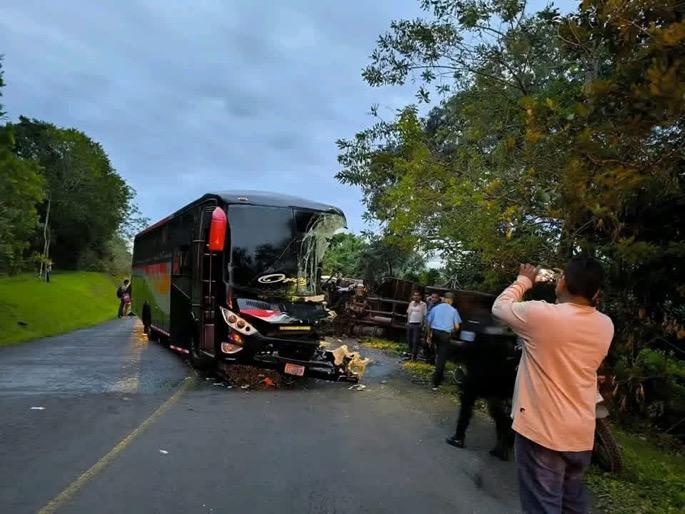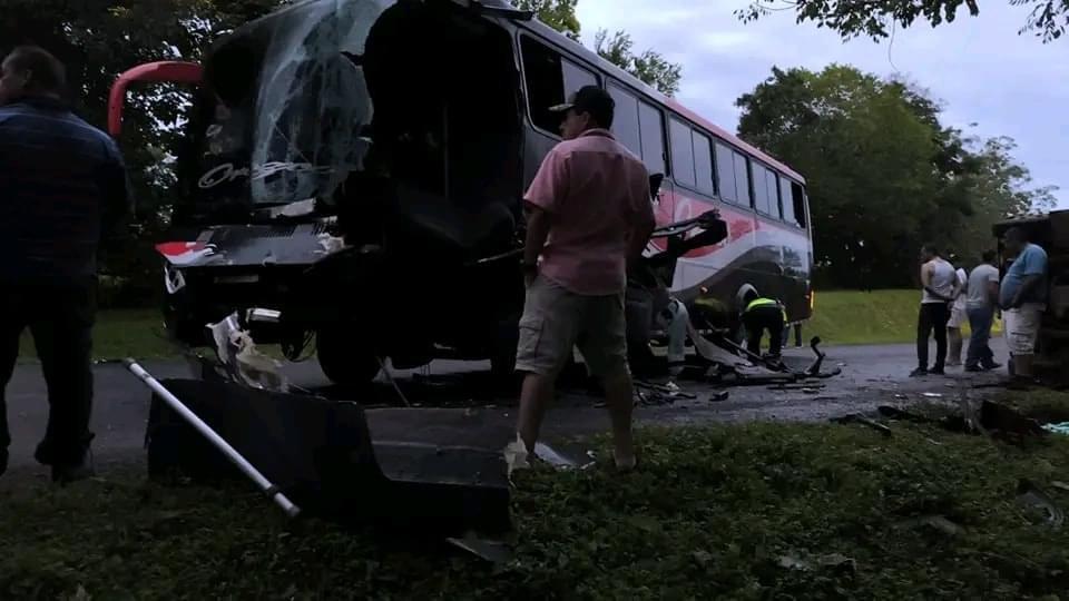 Tres personas lesionadas y cuantiosos daños materiales es el resultado una colisión frontal entre un autobús que  transportaba estudiantes universitarios y un camión, en la carretera que conecta la comunidad El Níspero, municipio de Nueva Guinea, con la comunidad Caracito en Río San Juan.