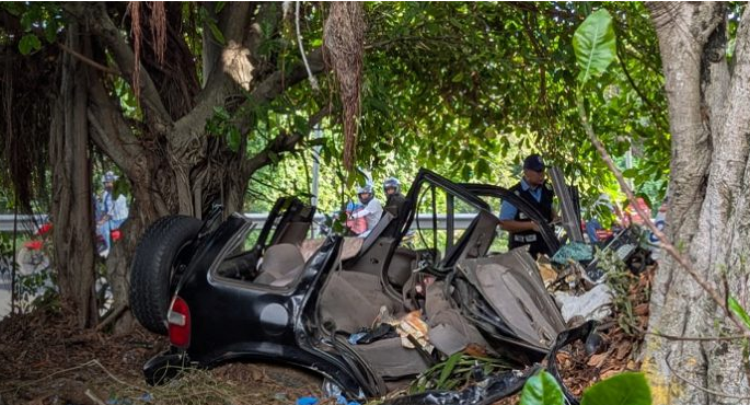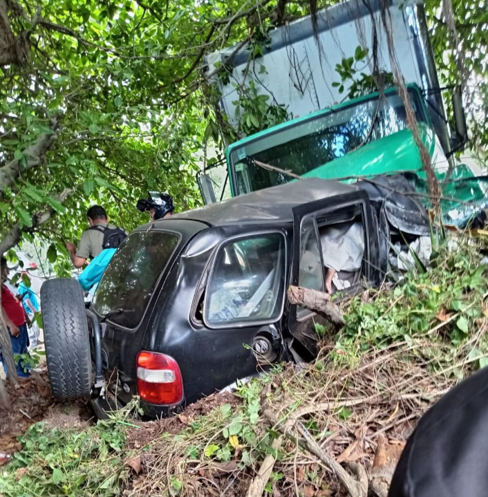 El camión conducido por Luis Alberto Araya García de 52 años, quien venía en dirección de El Crucero hacia Managua, se le fueron los frenos y tras impactar contra el vehículo de doña María Teresa, lo arrastró por varios metros, terminando estrellado primeramente contra dos postes del tendido eléctrico y luego en el tronco de un árbol, hasta quedar totalmente destruido y con ella adentro, muriendo de forma inmediata.
