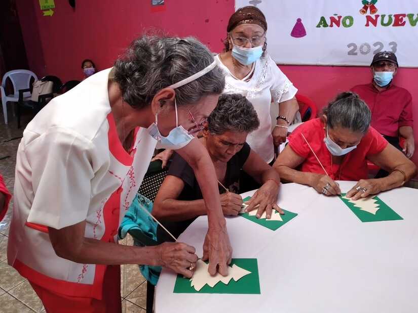 El consejo de la Promotoría Solidaria de Juventud Sandinista, realizó este miércoles un taller de manualidad en adornos navideños con personas de la tercera edad que asisten a la Casa Club del Adulto Mayor de Ciudad Jardín, en Managua.