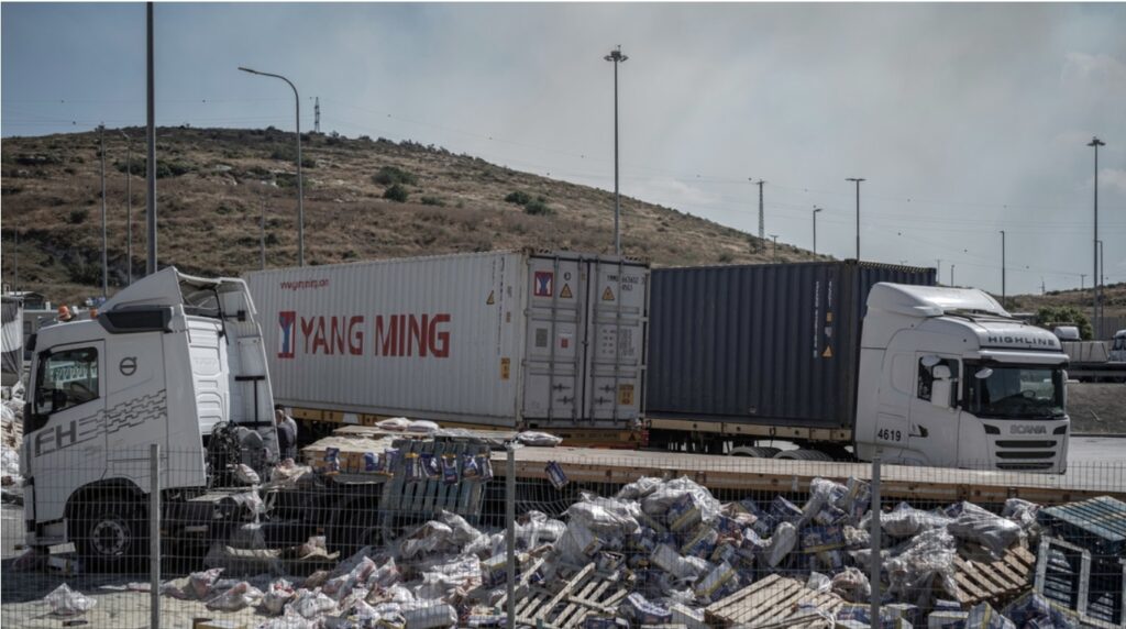 El grupo derechista Tzav 9, que pretende detener los envíos de ayuda humanitaria a Gaza hasta que se libere a los rehenes, reivindicó la responsabilidad del bloqueo del envío. El video muestra a activistas arrojando sacos de azúcar desde camiones. Además, participaron niños, que también estaban destruyendo ayuda humanitaria.