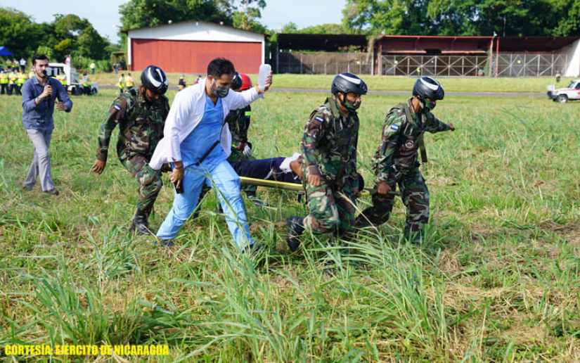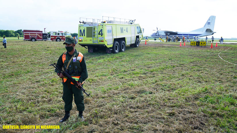 (Comunicado) El Ejército de Nicaragua consecuente con el lema de que “Somos el Pueblo mismo uniformado trabajando en su propio beneficio”, el 11 de noviembre de 2022, a través de la Fuerza Aérea y el Destacamento de Protección y Seguridad Aeroportuaria del Ejército de Nicaragua (DEPSA), en coordinación con el Instituto Nicaragüense de Aeronáutica Civil (INAC), e instituciones que conforman el Sistema Nacional para la Prevención, Mitigación y Atención de Desastres (SINAPRED), participaron en ejercicio de protección aeroportuaria en la pista del Aeropuerto Internacional Augusto C. Sandino, con el objetivo de ensayar las comunicaciones, el mando y control del Centro de Operaciones de Emergencia (COE).
