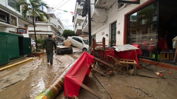 En el vecino estado de Colima, Nora, que se degradó a tormenta tropical, dejó destrucción en las playas y los restaurantes típicos conocidos como enramadas fueron arrastrados hasta el mar, reportaron medios locales.