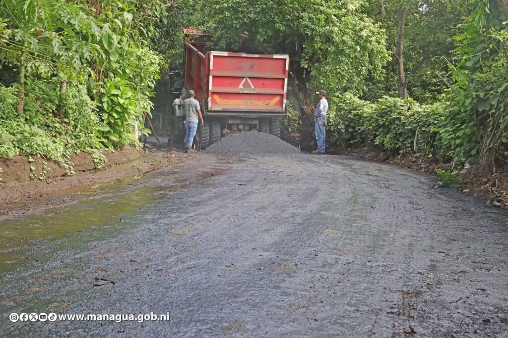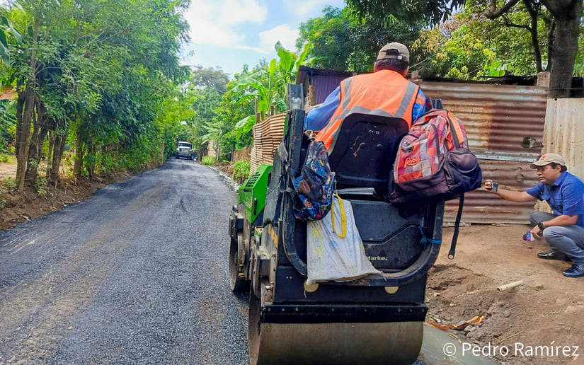 “Estamos aquí en la comunidad San Antonio Sur del Distrito V, supervisando el trabajo que hace la municipalidad y que va a entregar a la población en los próximos días, más de dos docenas de calles nuevas que van a beneficiar enormemente a todos los compañeros que viven en esta comunidad y otras comunidades cercanas que entran y van saliendo hacia el sector de Carretera a Masaya”, mencionó el Vicealcalde de la comuna capitalina, Enrique Armas.