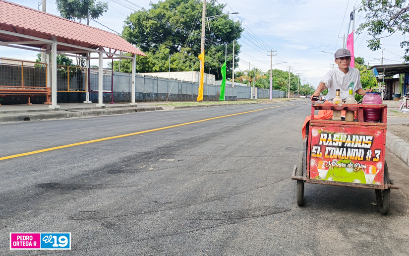 Para esta obra, la Alcaldía de Managua cambió la carpeta de rodamiento de adoquín a asfalto, en este sector por el que transitan vehículos livianos y pesados, una de las primeras avenidas de la antigua capital.