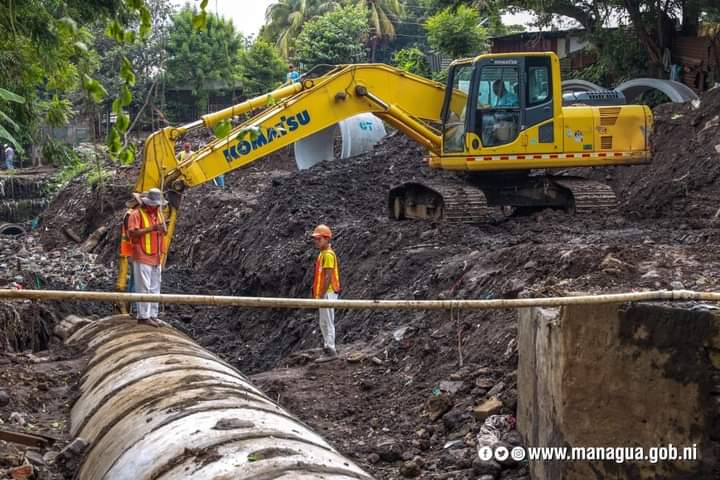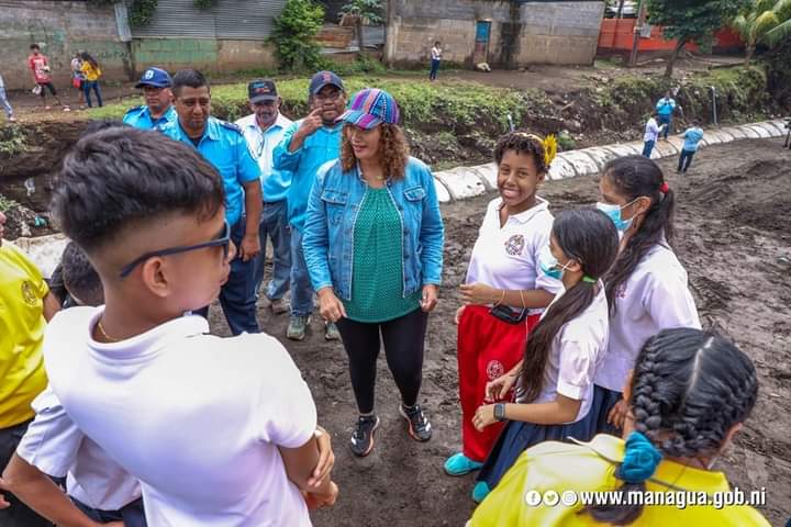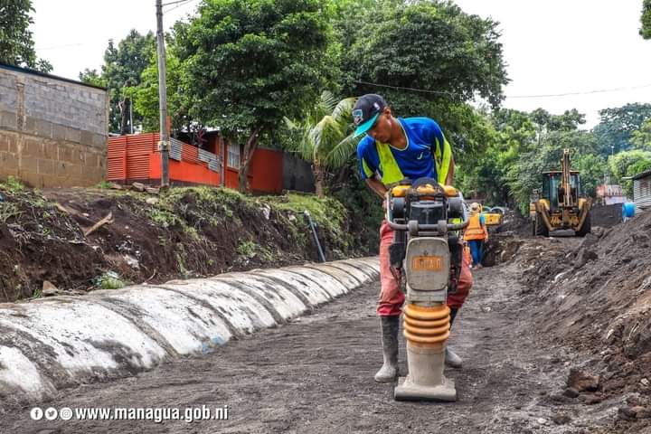 La Alcaldesa de Managua, Reyna Rueda, constató este martes el avance del proyecto de drenaje pluvial y mejoramiento vial, en el barrio Sócrates Sandino del distrito V.