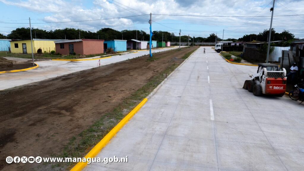 Autoridades de la Alcaldía de Managua entregaron este lunes, 74 nuevas calles de concreto en la Urbanización Caminos del Río, llegando a un 95% de la meta establecida a construir durante el 2025.