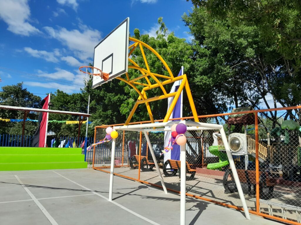 “Aquí se hizo una inversión de un poco más de siete millones de córdobas, donde hasta batería de baños tienen ahora, canchas con grama artificial, todo lo que es la luminaria son solares, lo que es el perímetro para la seguridad de los niños se enmallaron, la entrada complemente renovada. Aquí se hicieron 544 metros cuadrados de construcción del área de la cancha, más de 600 metros cuadrados de andenes y pintaditos de varios colores para que se vean bonitos, que les encante a los niños”, expresó la alcaldesa Reyna Rueda.