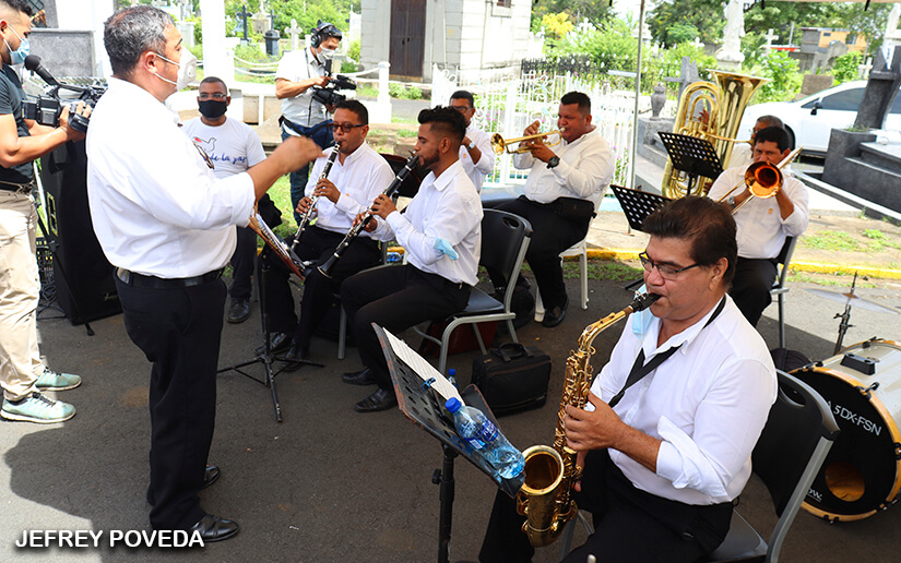 Durante la actividad que se desarrolló en el cementerio occidental de Managua, la orquesta municipal interpretó melodías que compuso el maestro Delgadillo.