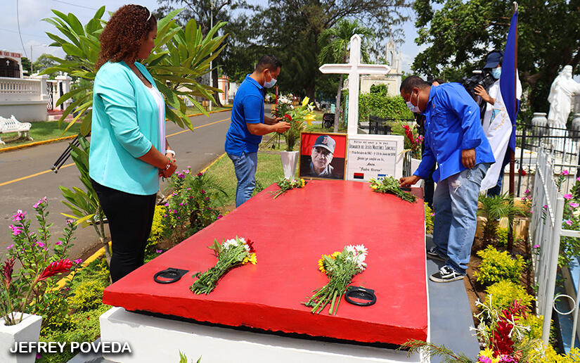 La alcaldesa de Managua, Reyna Rueda, colocó una ofrenda floral en la lápida donde reposan los restos del compositor.