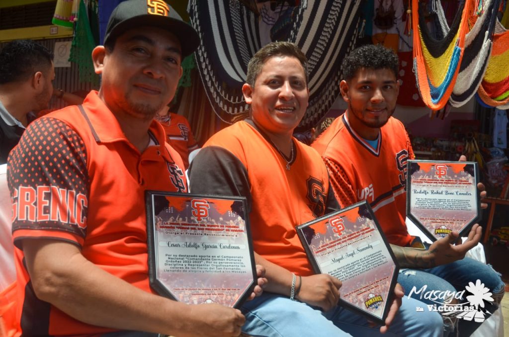 Por su destacada actuación en el Campeonato Nacional Germán Pomares Ordóñez, la Alcaldía de Masaya entregó reconocimiento a los integrantes del equipo de béisbol de San Fernando en la ciudad de Las Flores.