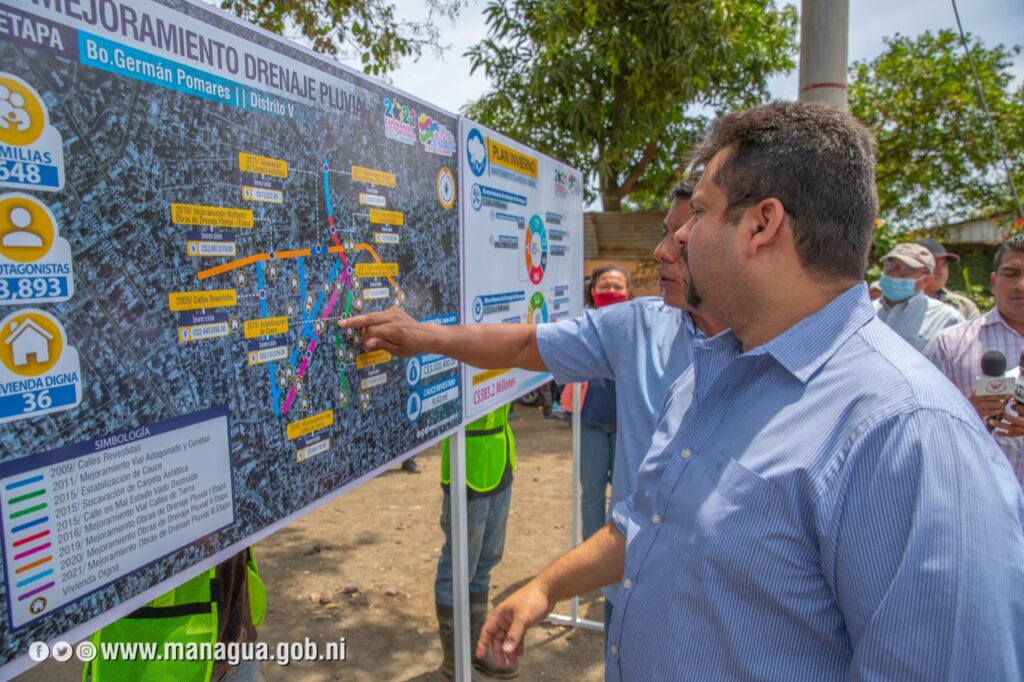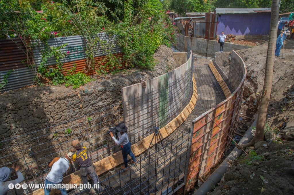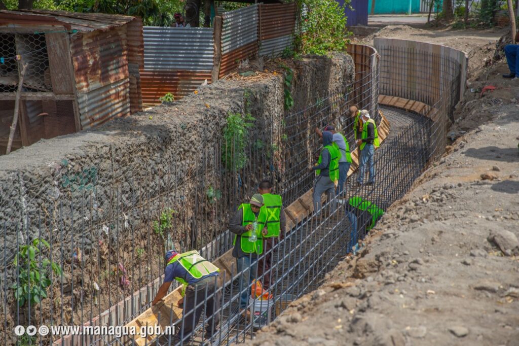 Moreno, explico que este proyecto es prioridad porque elimina uno de los puntos críticos de Managua. Las obras tienen un 50 por ciento de avance. Entre sus alcances está el revestimiento de casi 100 metros de longitud con concreto, que vienen beneficiar a más de 600 familias que habitan en los alrededores.