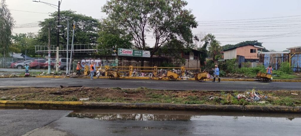 Desde muy tempranas horas de la mañana de este sábado, las cuadrillas de la Alcaldía de Managua iniciaron labores de limpieza en las principales calles, luego de la fuerte lluvia que cayó la noche del viernes en la capital.