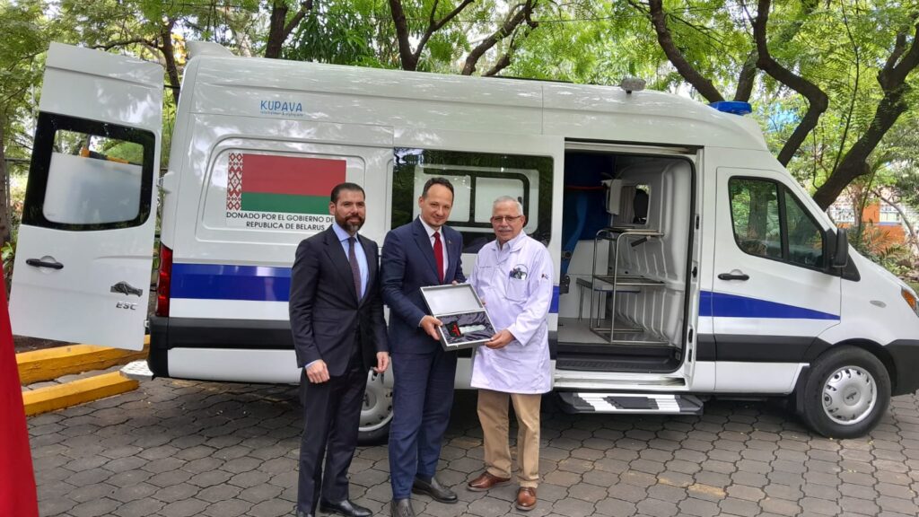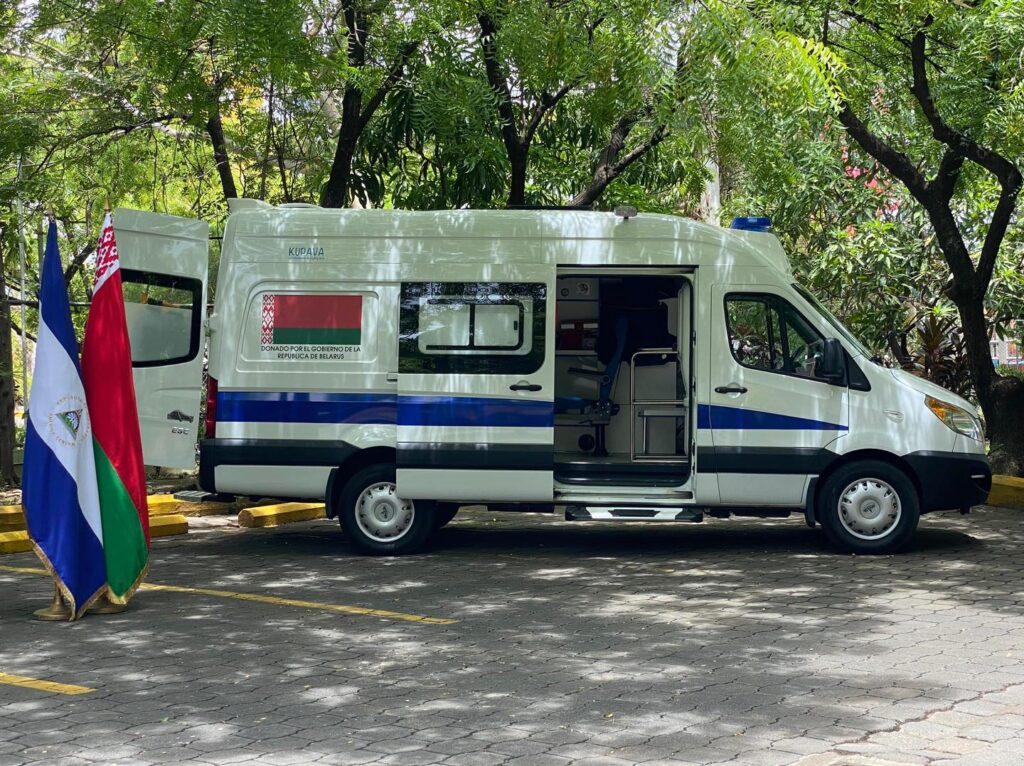 La delegación de Belarús ha hecho una amplia exposición sobre las grandes capacidades que tienen en producción de equipos y maquinarias para el sector de la salud. Y el día de hoy como una muestra de solidaridad, de amor por Nicaragua, de cariño del Presidente Alexander Lukashenko, estamos recibiendo esta ambulancia que ha sido donada por la República de Bielorrusia como una muestra de esos excelentes equipos que produce este gran país”, destacó el Compañero Laureano.