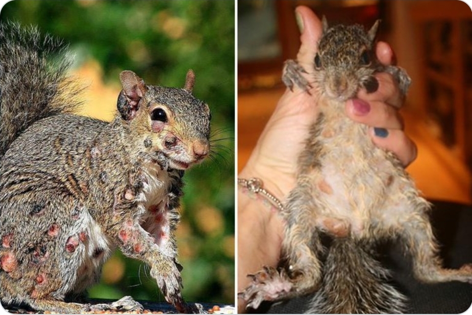 Ardillas grises cubiertas con una especie de verrugas llenas de pus y con clapas en el pelo (alopecia areata) en varias zonas del cuerpo fueron vistas en los últimos años tanto en EEUU como en Canadá.