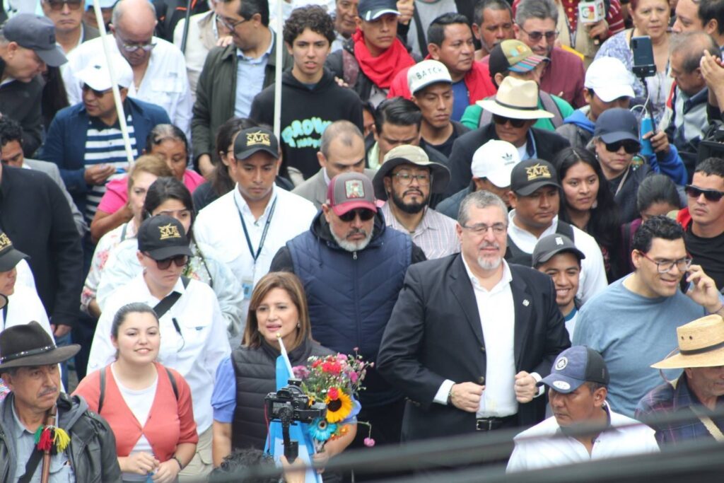 El binomio electo presidencial de Guatemala realizó este jueves una marcha, acompañado de movimientos sociales y grupos indígenas desde la Plaza de los Derechos Humanos, frente a la Corte Suprema de Justicia (CSJ), hasta la Corte de Constitucionalidad, en el centro de Ciudad de Guatemala.