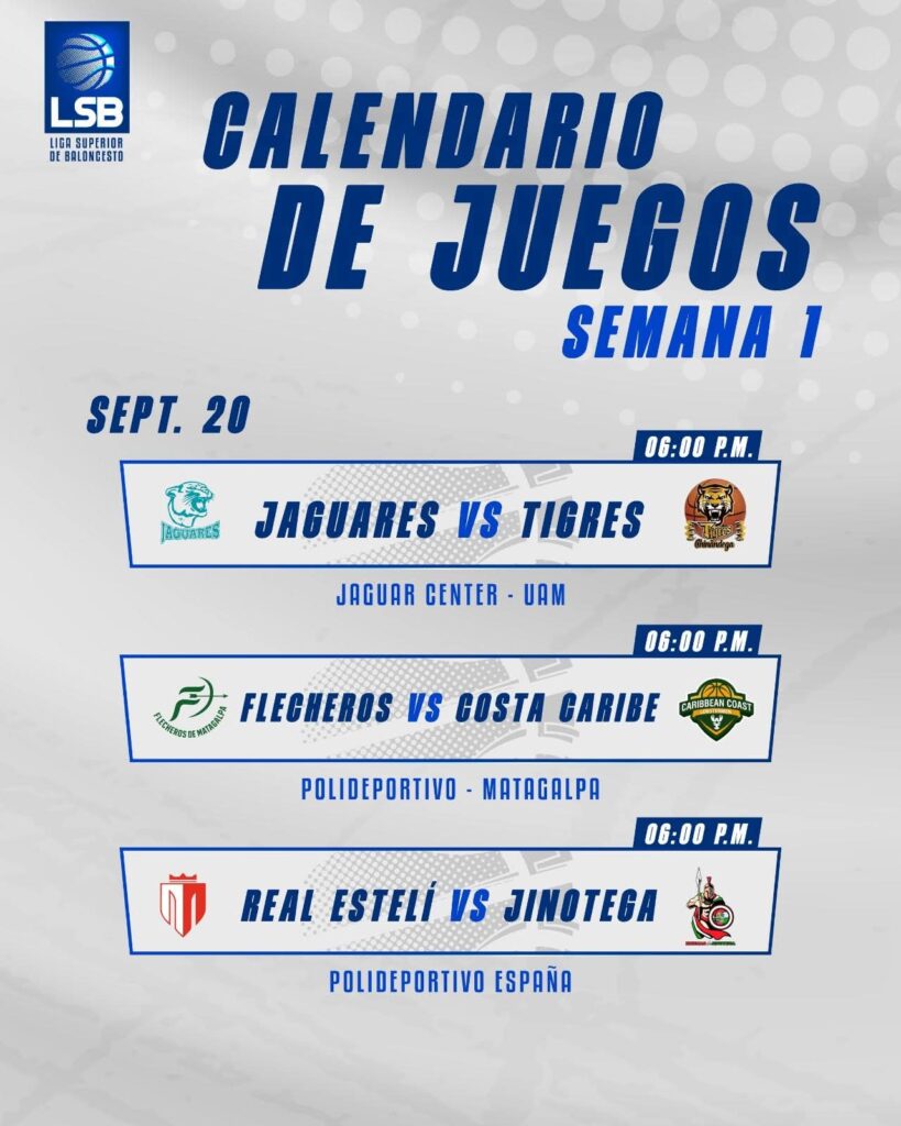 Los encuentros que se realizarán en esta jornada son: los Jaguares UAM ante los Tigres de Chinandega en el Jaguar Center, los Flecheros de Matagalpa contra la Costa Caribe en el Polideportivo de la Perla del Septentrión y el Real Estelí versus las Brumas de Jinotega en el Polideportivo España.