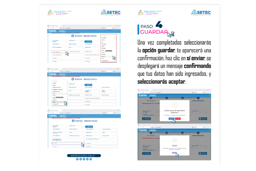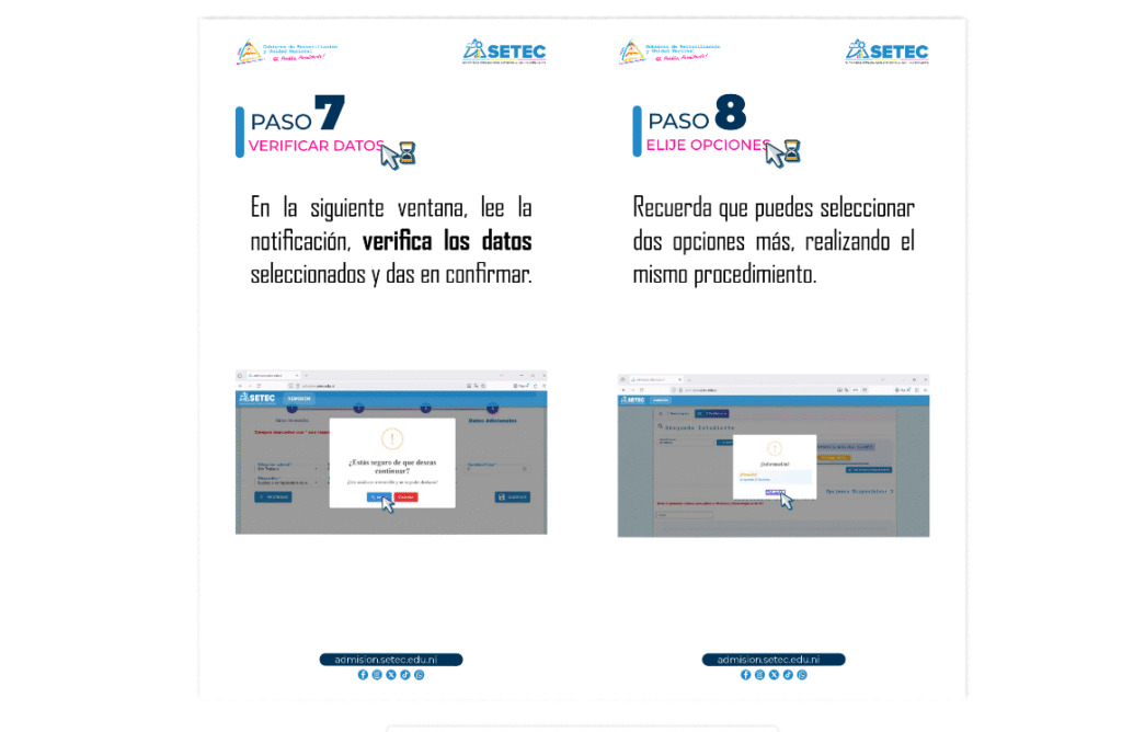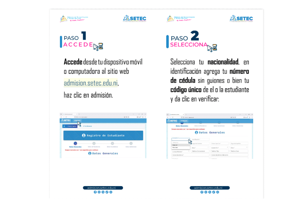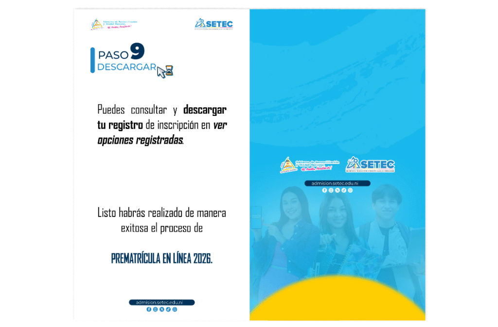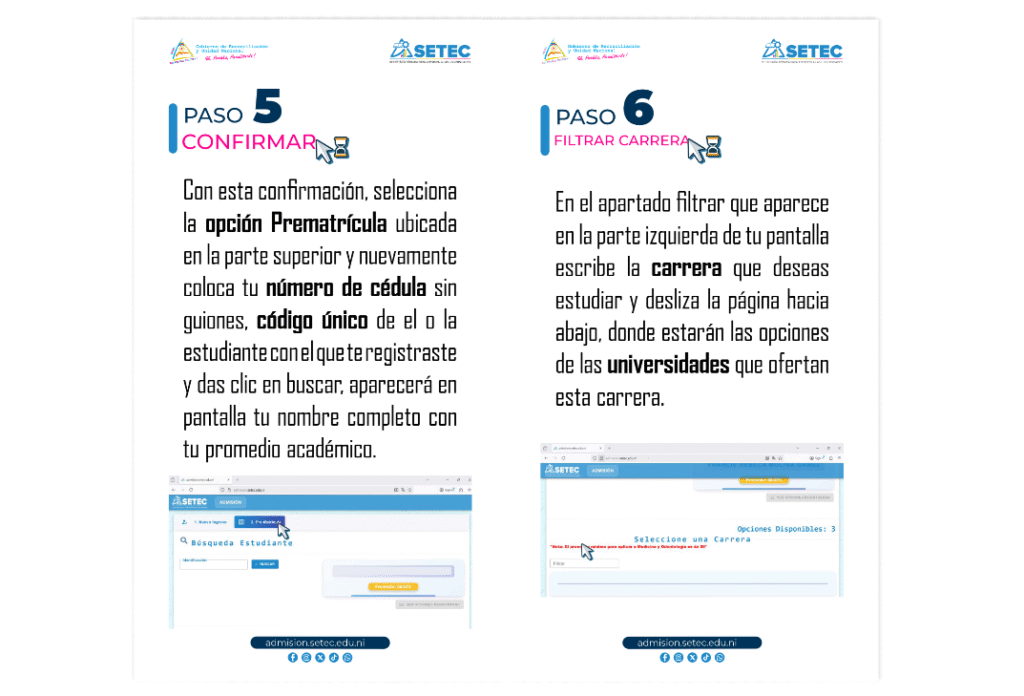 Los futuros bachilleres interesados en ingresar a las universidades públicas, tienen que prematricularse en el sitio web de la SETEC y dar clic en admisión.setec.edu.ni