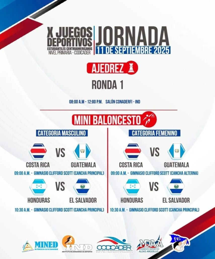 Los juegos contarán con competencias como ajedrez, kids athletics, mini baloncesto, fútbol 7, gimnasia, natación, tenis de mesa y mini voleibol, donde estarán participando niños y niñas de 6 a 12 años de Guatemala, El Salvador, Honduras, Costa Rica, Panamá, Belice, República Dominicana y Nicaragua.