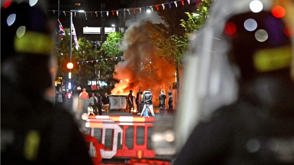 En videos divulgados en redes sociales, se aprecia cómo un grupo de manifestantes prende fuego al hotel Holiday Inn Express en la ciudad de Tamworth (Inglaterra, Reino Unido).
