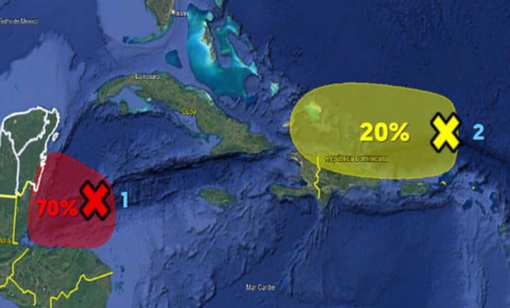 El Disturbio Tropical denominado INVEST 95L, el cual se encuentra ubicado sobre aguas del Mar Caribe y que interactúa con una onda tropical muy activa, misma que se asocia a un centro de baja presión, ha incrementado su potencial de desarrollo ciclónico a 70%.