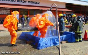 Como parte de la estrategia de formación y capacitación, bomberas y bomberos unificados participaron en el ejercicio demostrativo de control de