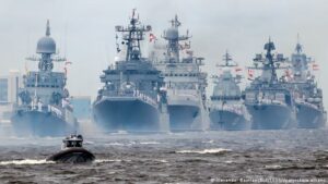 El presidente de Rusia, Vladímir Putin, presumió del poderío militar de Rusia durante un desfile naval en San Petersburgo con
