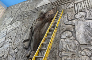 Nota de prensa-Habiendo realizado el trabajo preliminar de liberación de cargas en el resto de la escultura de Cristo, y