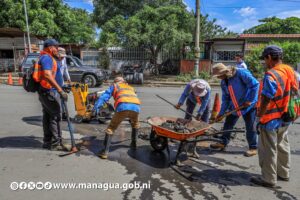 Este martes en los cinco distritos de Managua la comuna capitalina inicio labores de recarpeteó, bacheo y reparación de adoquinados