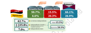 Entre los nicaragüenses, el FSLN tiene una “simpatía dura” del 50.7%, y un 15.5% de “simpatía suave”, es decir, el