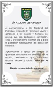 El Ejército de Nicaragua consecuente con el lema de que “Somos el Pueblo mismo uniformado trabajando en su propio beneficio”, a través