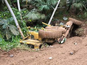 Una motoniveladora, conocido también como patrol, sufrió un desperfecto mecánico este lunes por la tarde mientras era trasladada hacia el