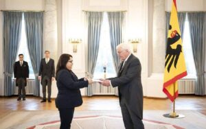 En el palacio de Bellevue, la diplomática nicaragüense, Sabra Murillo Centeno, entregó ante el Presidente de Alemania, Frank Walter Steinmeier,