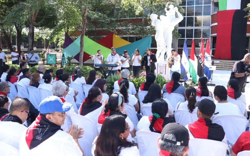 “La lucha, la insignia, la dignidad, la seguimos manteniendo y como estudiantes, eso es lo que nos va a inspirar a salir adelante y nos va a inspirar a salir a vencer, desde nuestro Gobierno Revolucionario, inspirado, liderado por el Comandante Daniel Ortega y la Compañera Rosario Murillo, hoy decimos presente y hoy decimos viva el pueblo heroico de Palestina”, expresó Llanes.