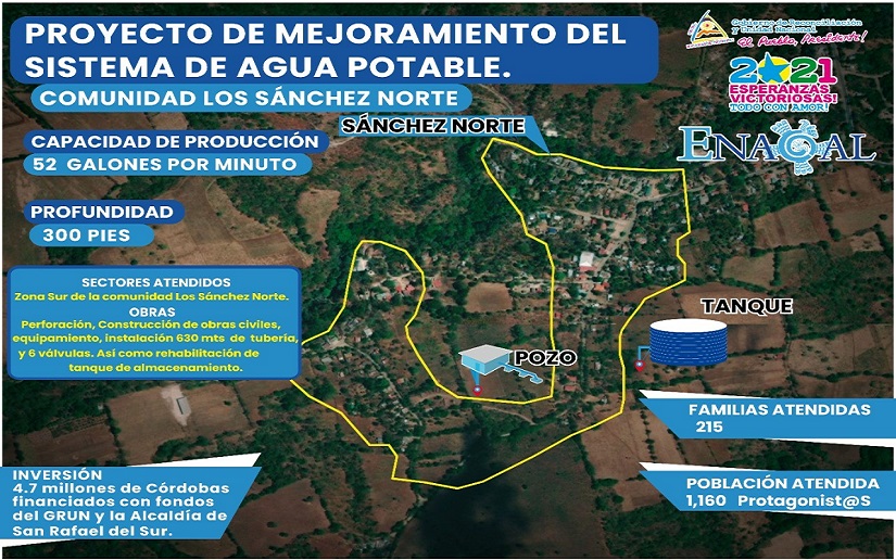 La Empresa Nicaragüense de Acueductos y Alcantarillados (ENACAL), informa que este 17 de Febrero, realizó visita de seguimiento y evaluación al Proyecto de Mejoramiento del Sistema de Agua Potable en la Comunidad Los Sánchez Norte, San Rafael del Sur.