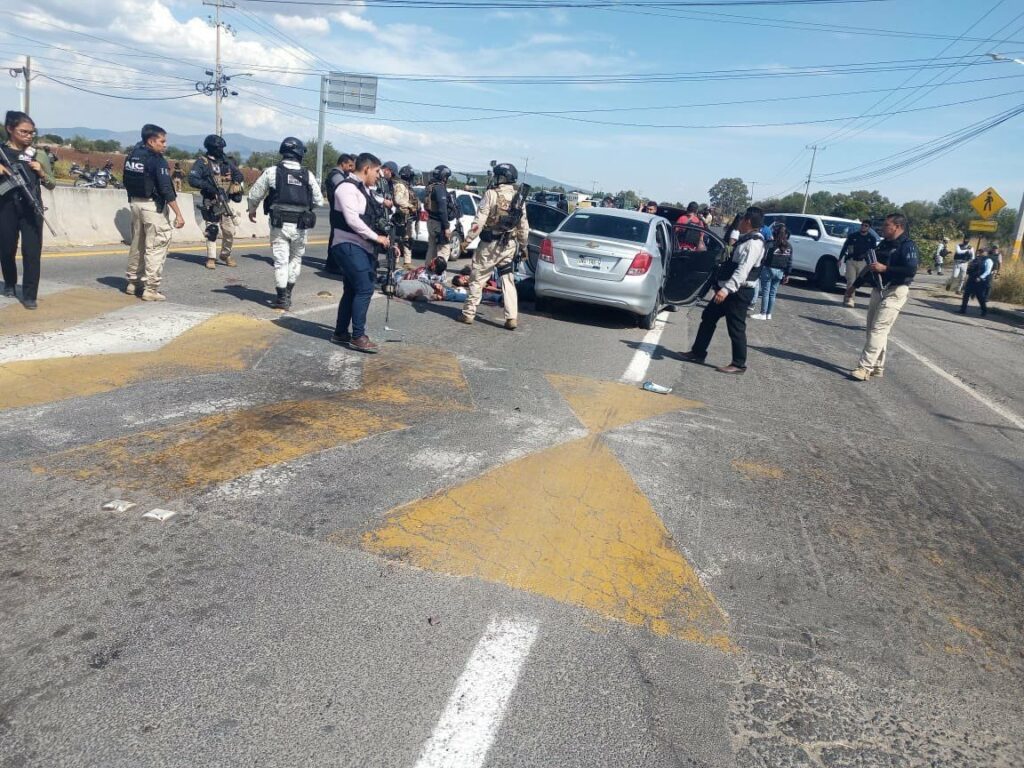 En el momento en que los agentes policiales abandonaban la zona, civiles armados los persiguieron en al menos tres vehículos y se desató la mencionada balacera en la vía que conduce a Celaya. Las hostilidades quedaron registradas en videos captados por habitantes de la comunidad que fueron testigos a distancia.