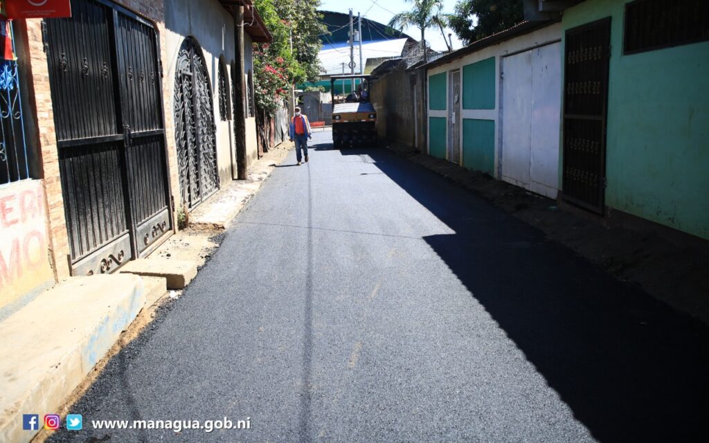 El Programa Calles para el Pueblo asfalto este jueves 2 cuadras nuevas en el barrio Rene Cisneros, en el distrito I. El proyecto tiene una inversión cercana al millón de córdobas y beneficia a más de 8 mil protagonistas.