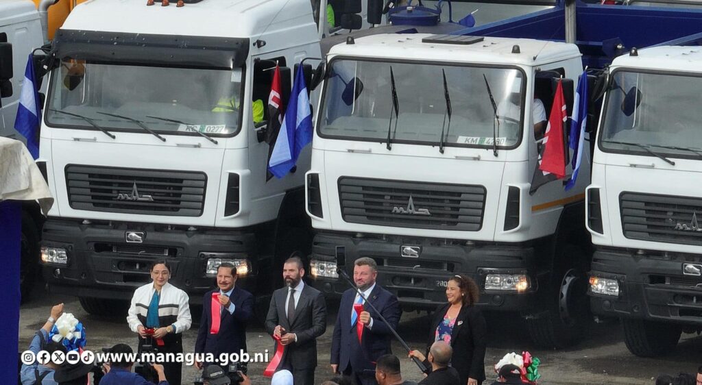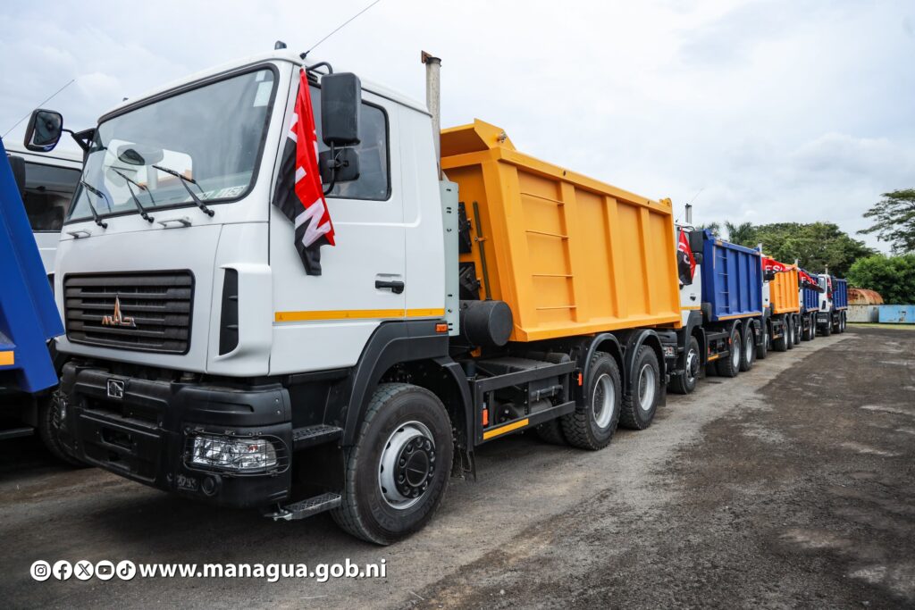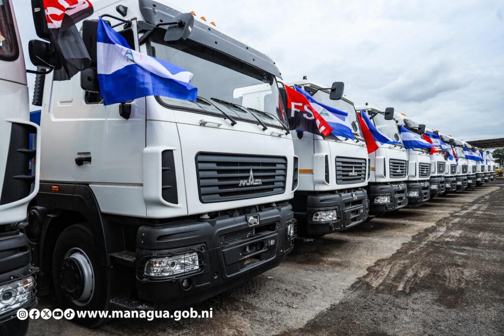Como parte de un componente de 712 vehículos procedente de Belarús, Nicaragua recibió este martes 128 equipos de construcción, a fin de fortalecer la capacidad operativa de 38 municipalidades y del Ministerio de Transporte e Infraestructura (MTI), contribuyendo al desarrollo, seguridad y el bienestar de las familias.