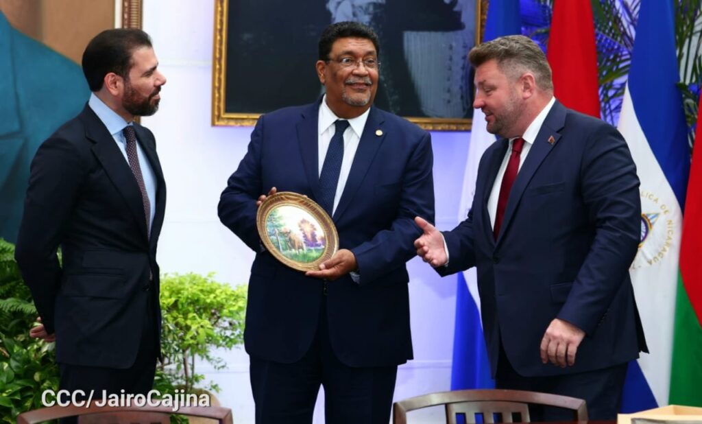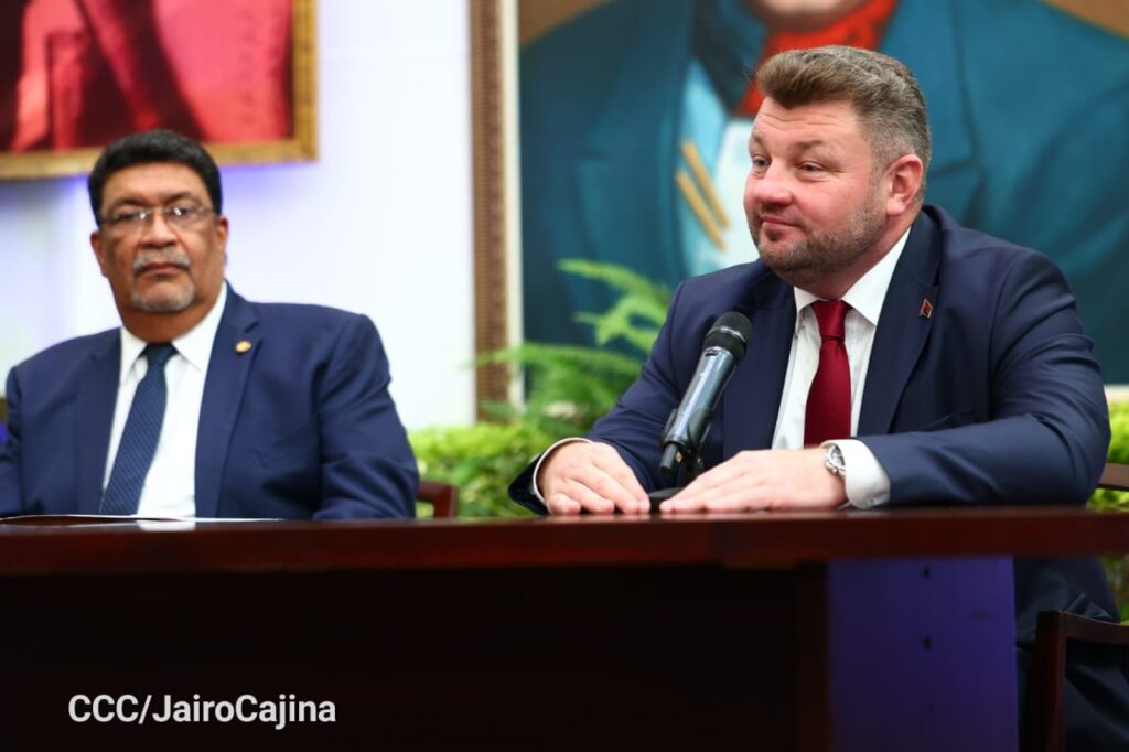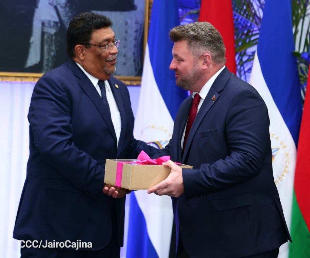 El Embajador de Belarús, Vitali Barchuk, entregó este lunes sus Copias de Estilo al Canciller de Nicaragua, Valdrack Jaentschke, con lo cual quedó acreditado como representante diplomático ante nuestro país.